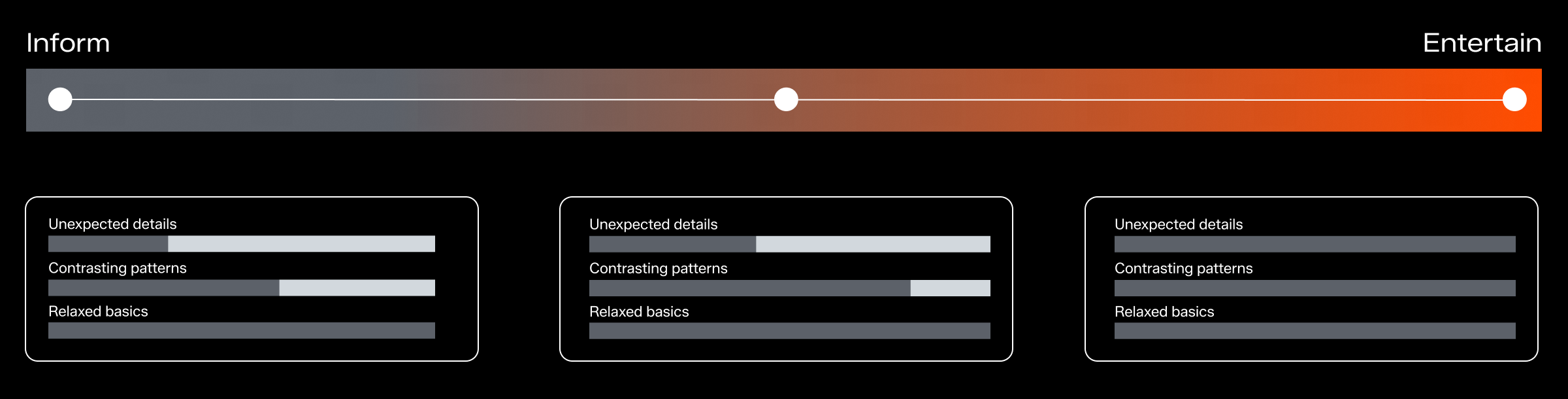 Use these links to jump to the examples most relevant to you – or scroll the page to read them all. The left-hand column shows the ‘inform’ side of our voice flex, with ‘entertain’ in the right column.