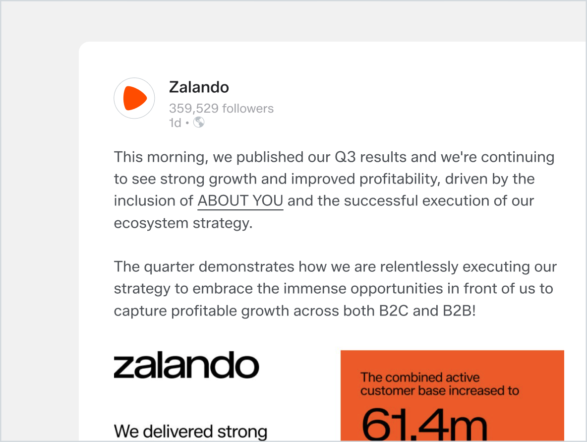 We’re keeping the message focused and bringing in the Zalando perspective.