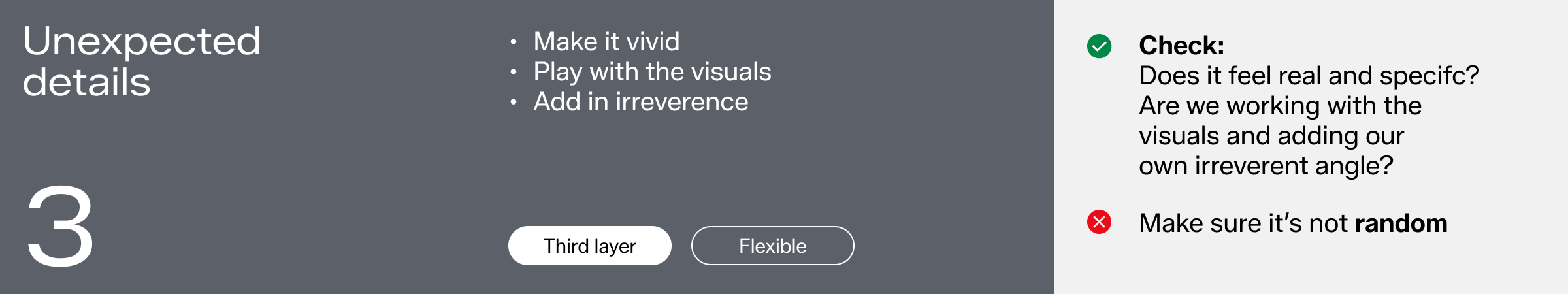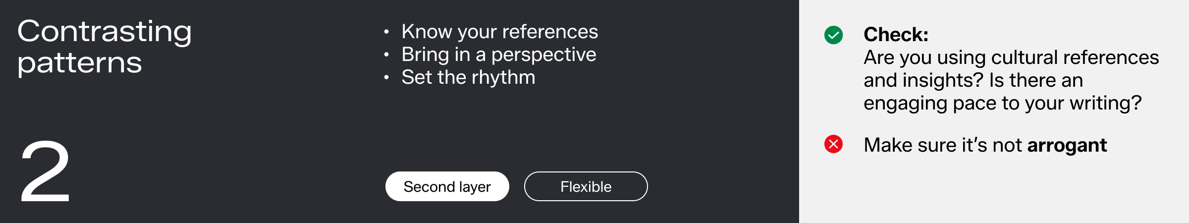 We layer up our three voice qualities: