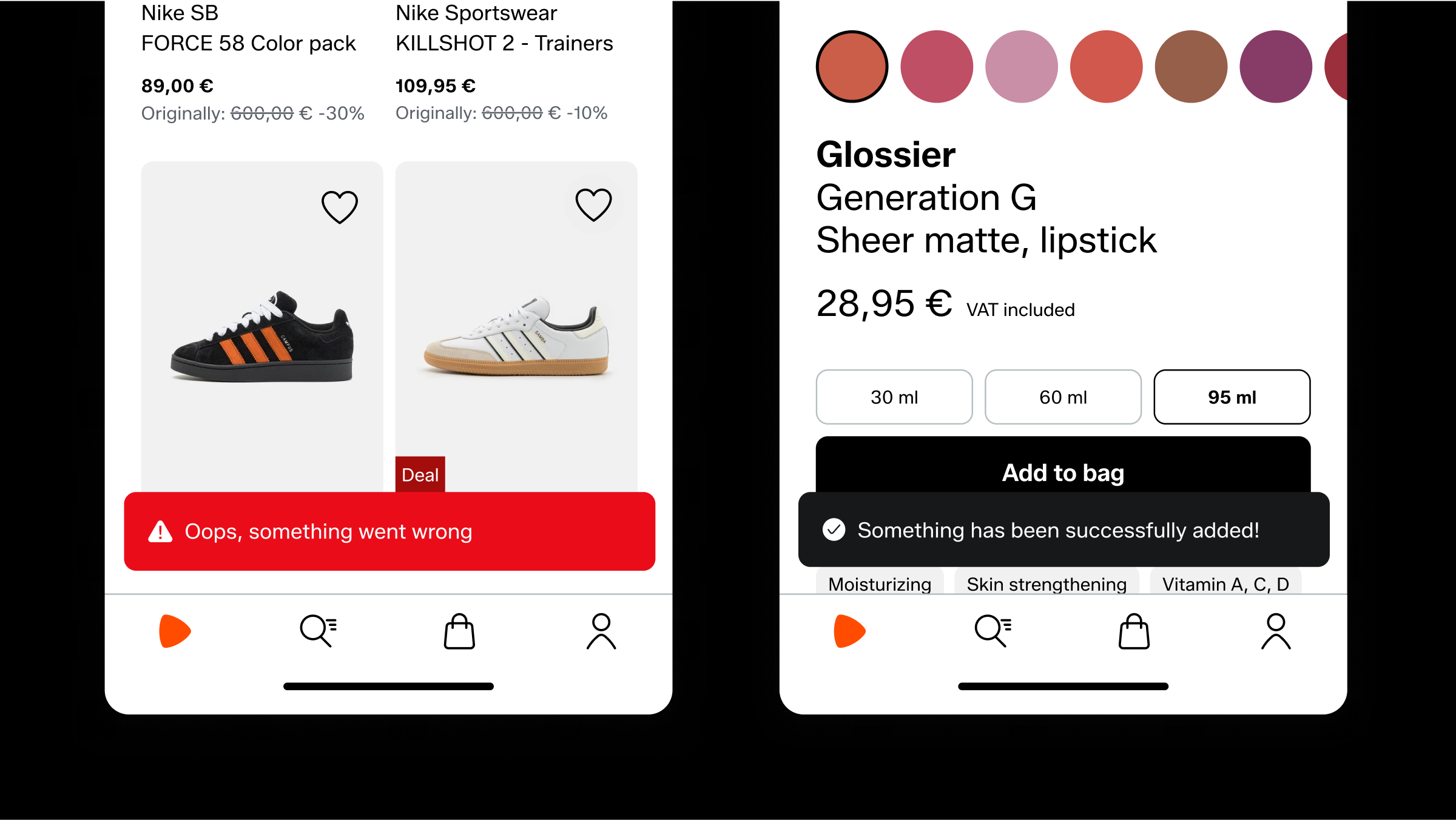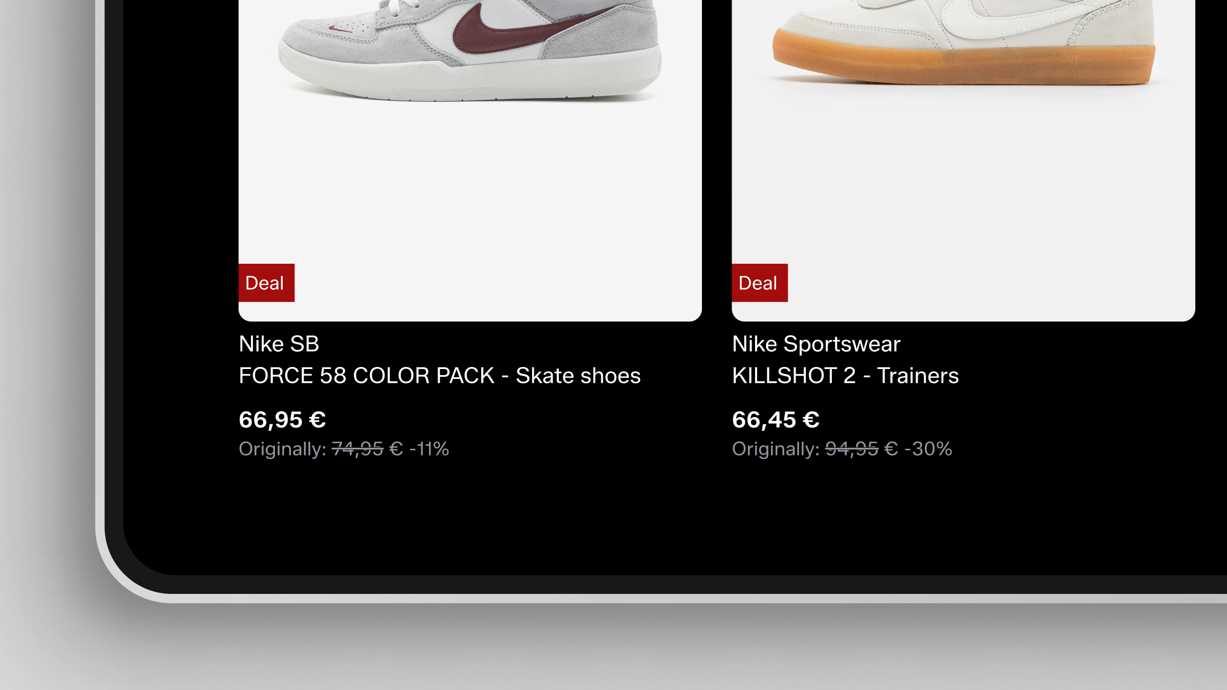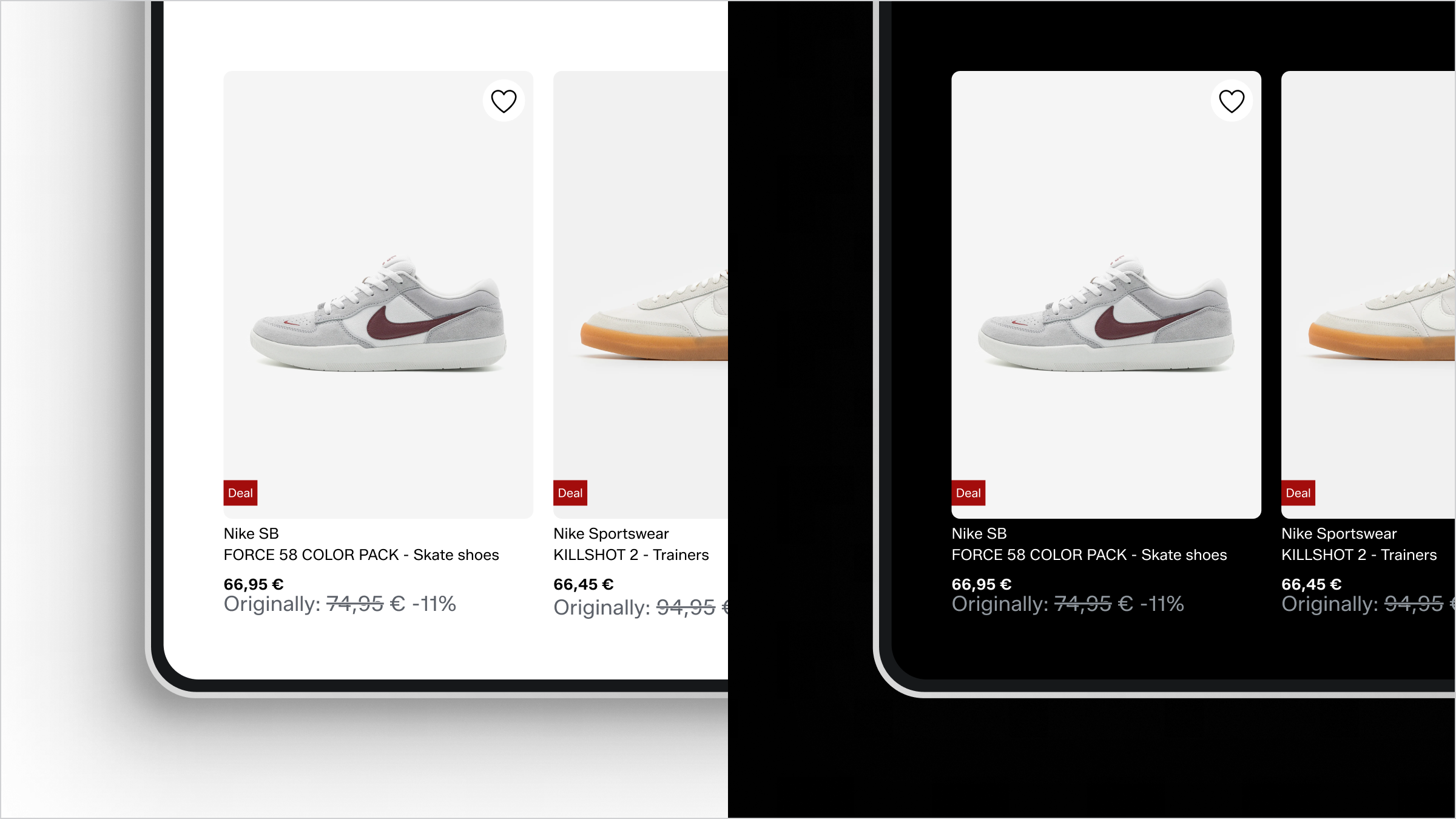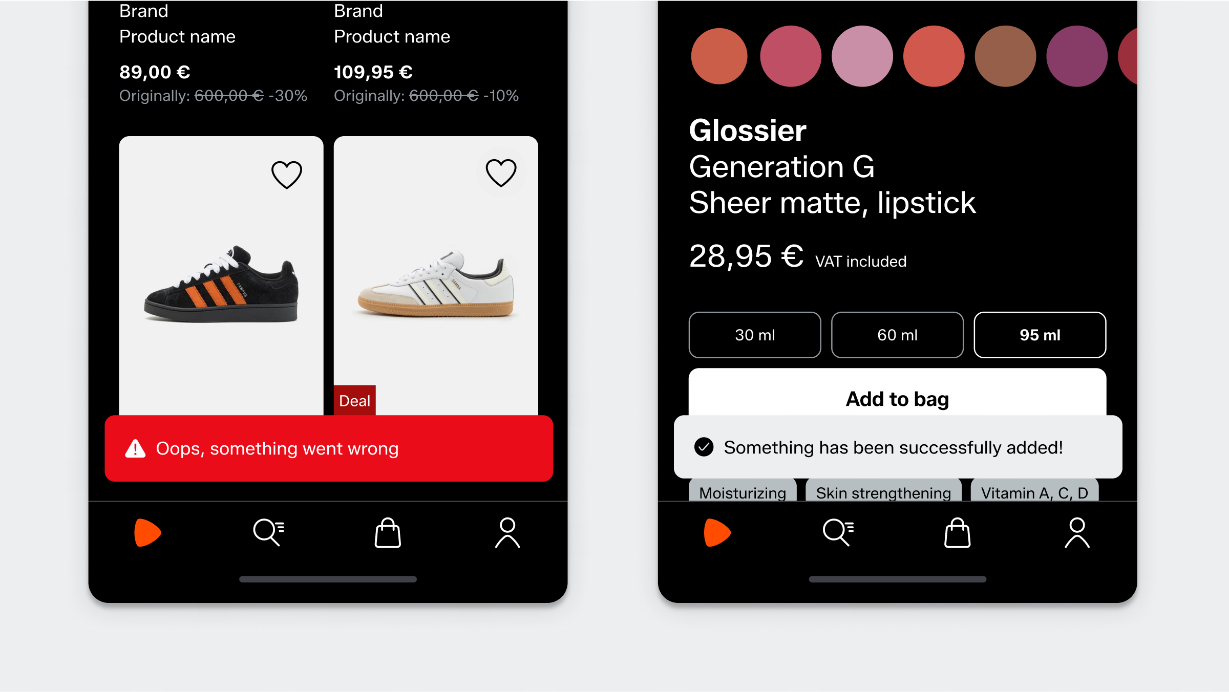 Deals and offers use the same red colour. The muted tone never conflicts with the vibrancy of our hero orange.