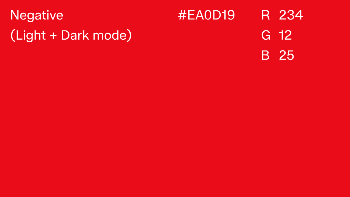 The system feedback colour red is only to be used for error and warning state. It has a deliberately different red tone to have enough contrast from the red deal scale. Success, information and interactive states use black (or white) from the grey scale.