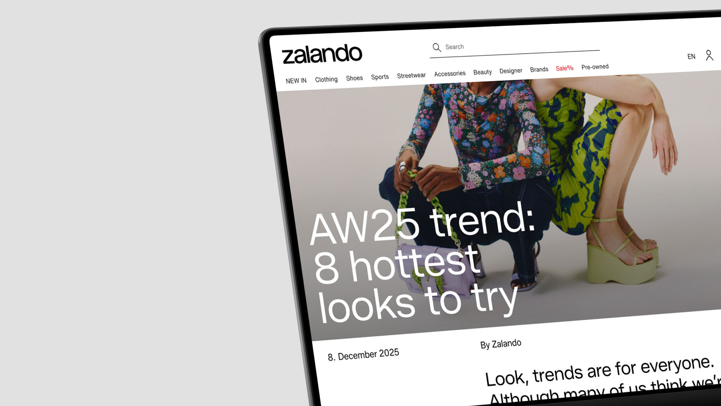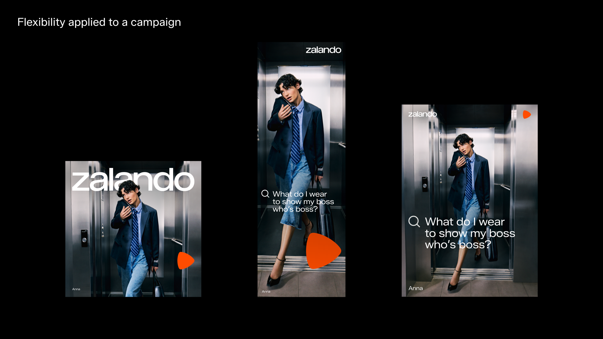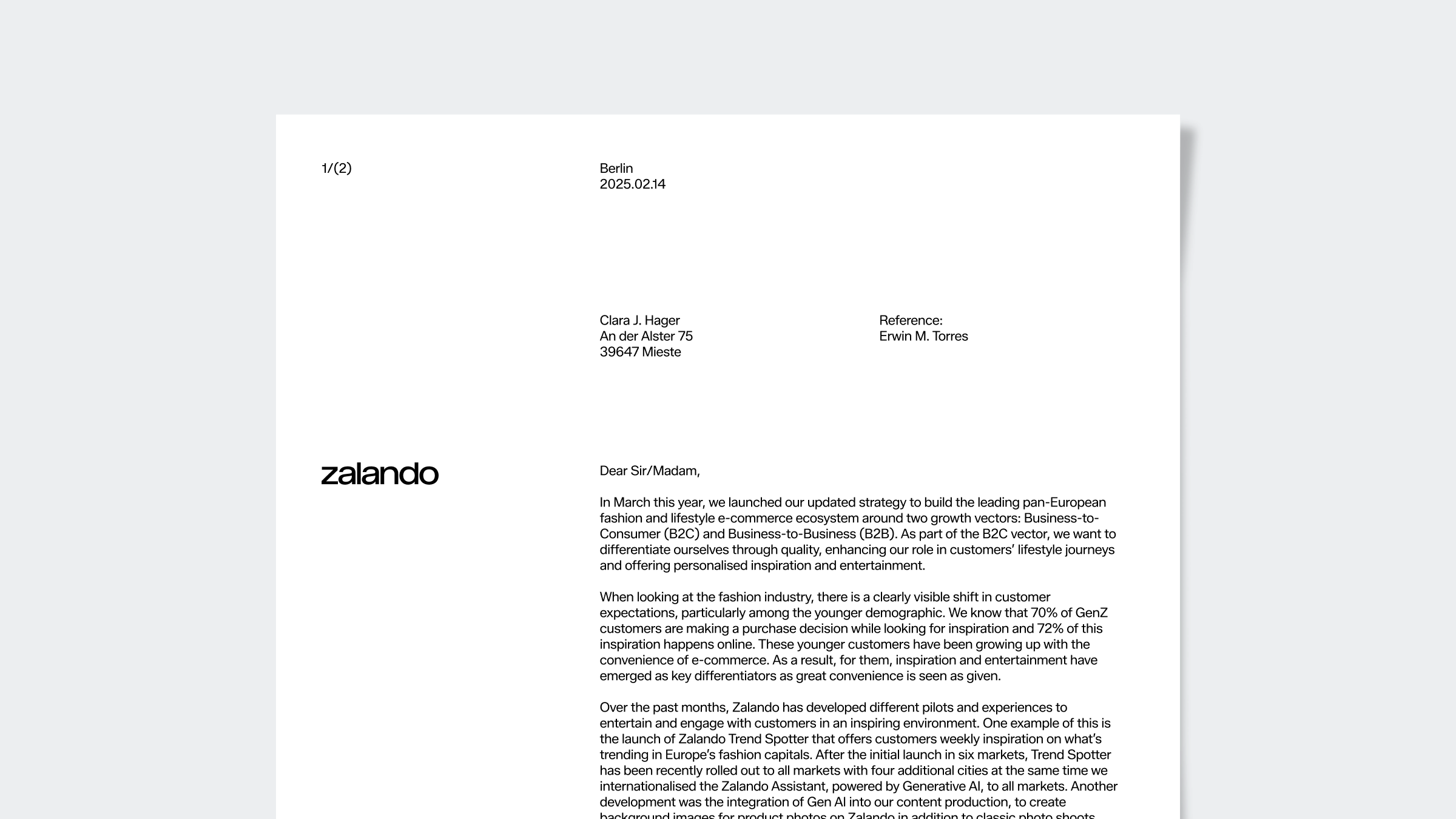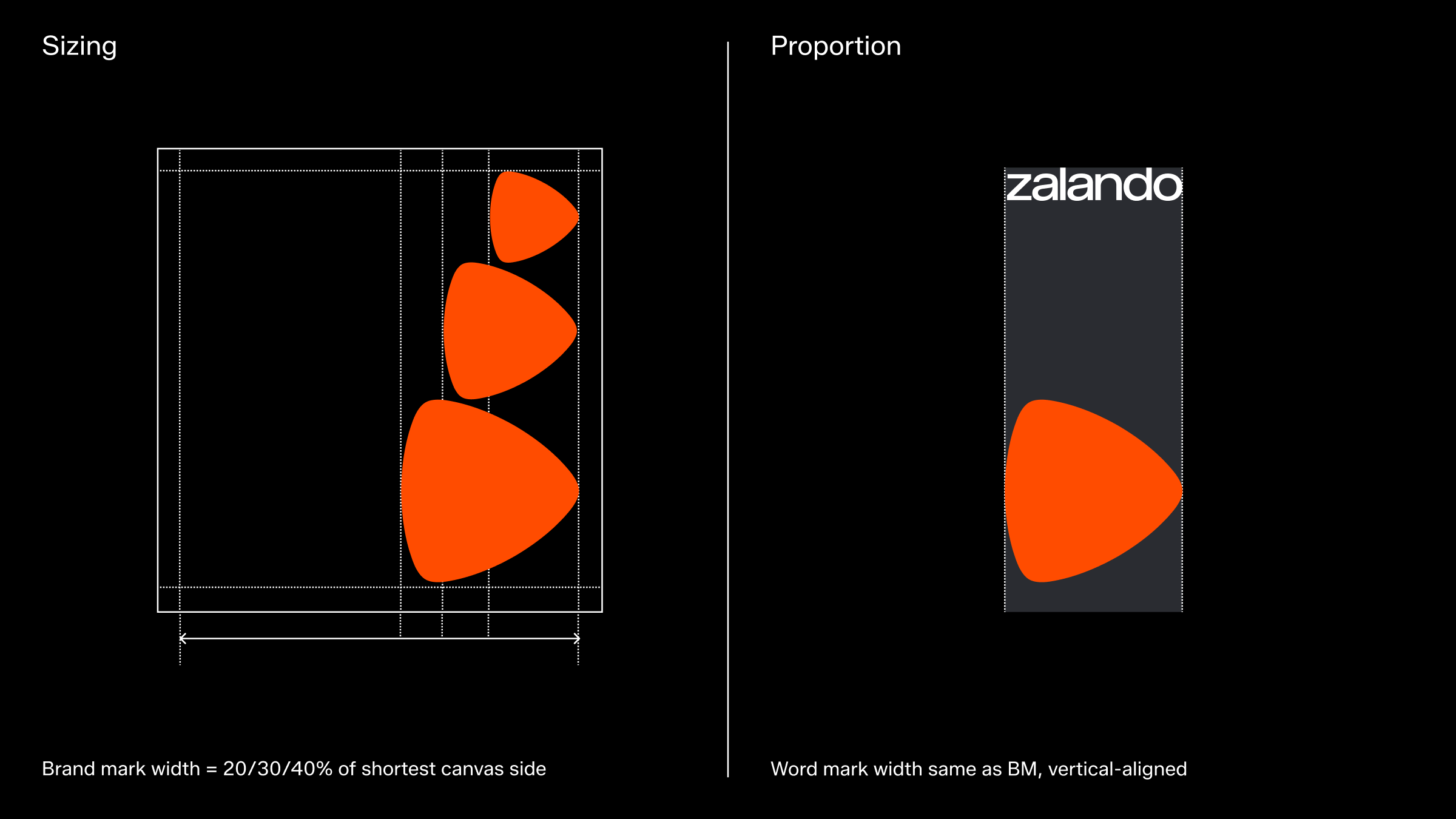 The Zalando brand mark and word mark should not be combined as a fixed lock-up. This rule applies to all formats and must be consistently observed when applying the assets to any design. While both elements can appear on the same surface, they must always be placed separately. (We realise zalando.de still carries a lock-up and are working to remove this exception)A flexible logo-system