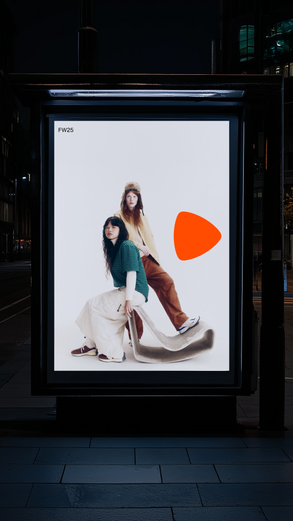To avoid interference with background content like photography, alternative placements are allowed. Our emphasis on whitespace and contrast leads to positioning the brand mark and word mark far apart – one at the top margin and the other at the bottom – creating a clean, modern look that highlights each element distinctly. While this layout ensures clarity and impact, it remains flexible for unique situations.