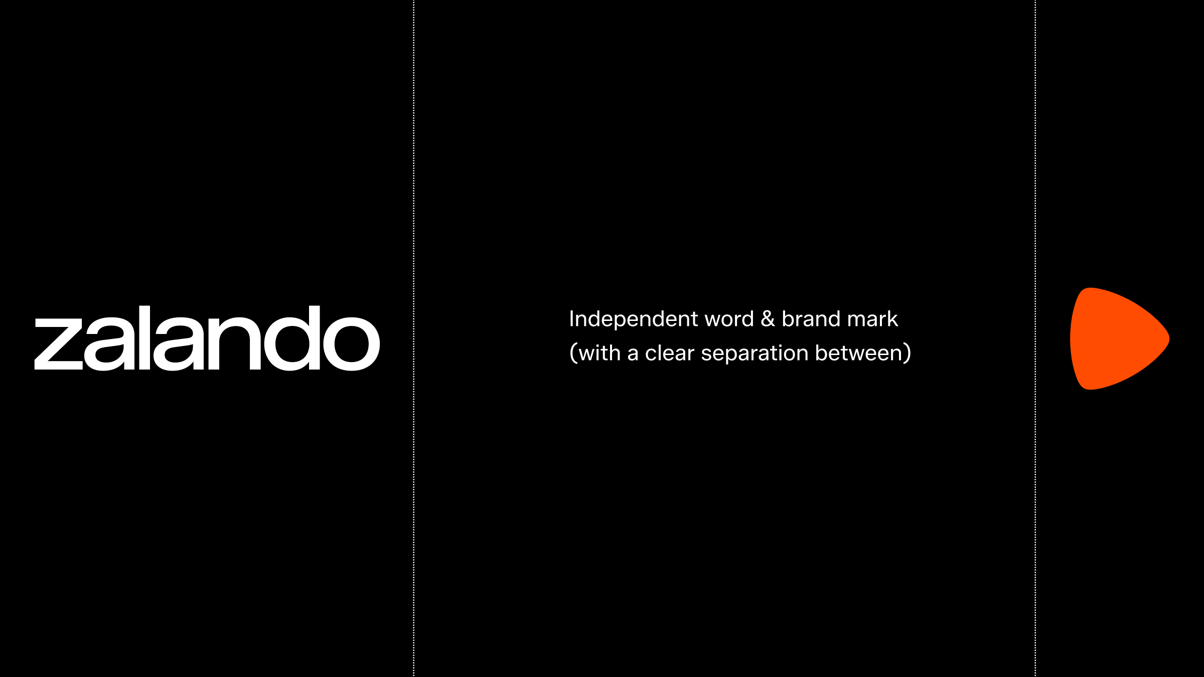 The Zalando brand mark and word mark should not be combined as a fixed lock-up. This rule applies to all formats and must be consistently observed when applying the assets to any design. While both elements can appear on the same surface, they must always be placed separately. (We realise zalando.de still carries a lock-up and are working to remove this exception)A flexible logo-system