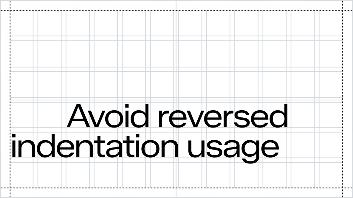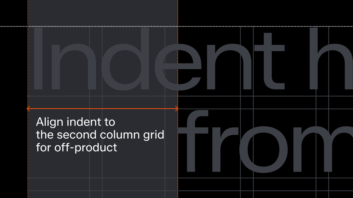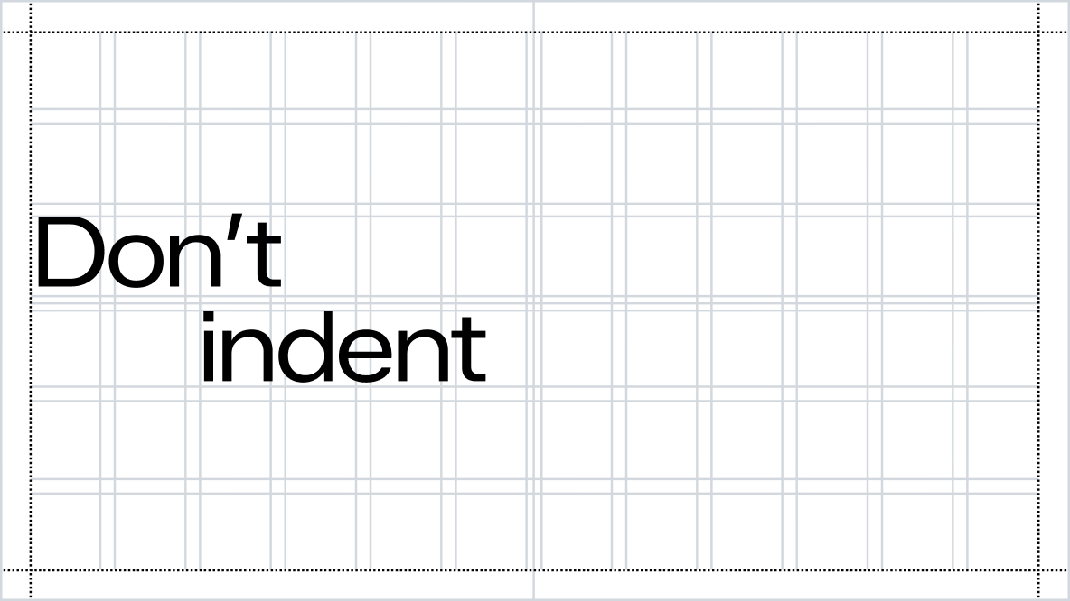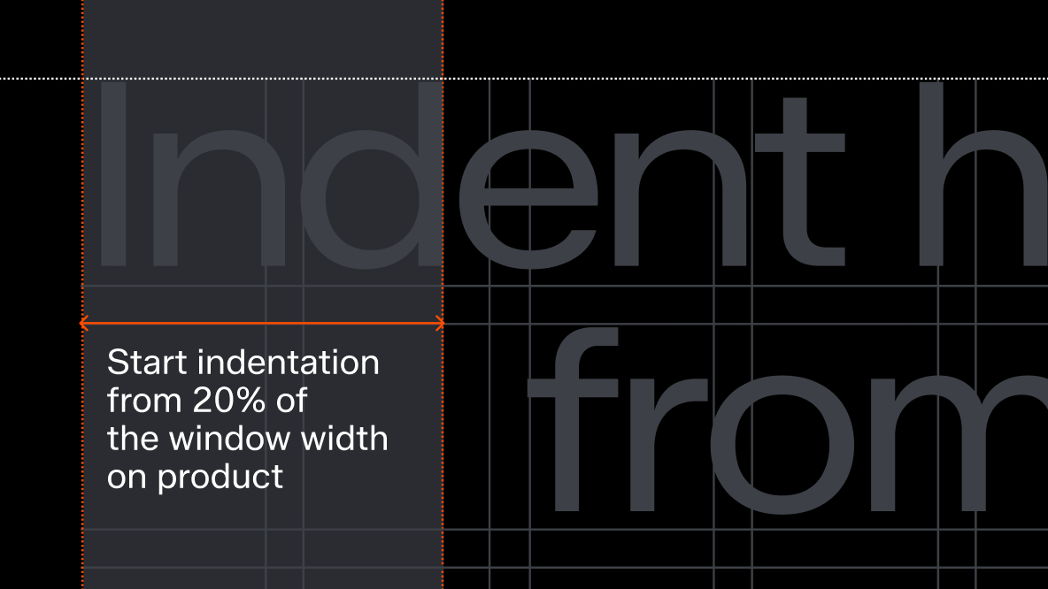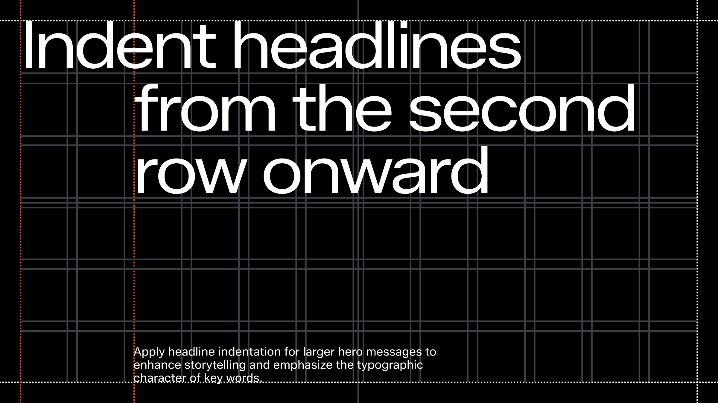 Apply headline indentation for larger hero messages to enhance storytelling and emphasize the typographic character of key words. Avoid overusing indentation and refrain from applying it to non-headline content.