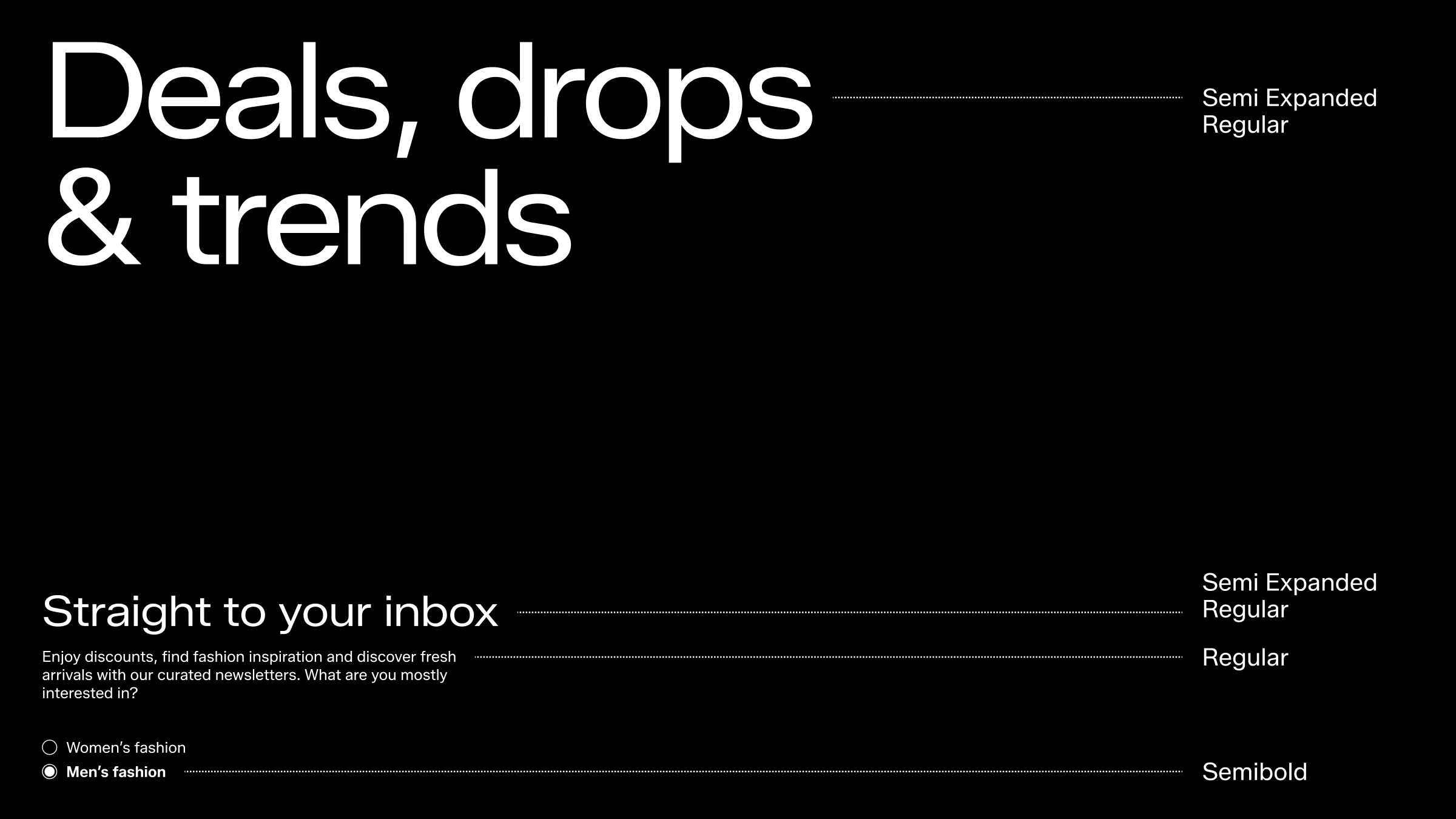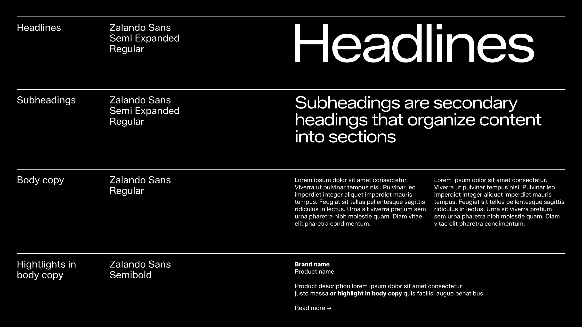 Together, these three weights are the true champions of our core expression, creating a powerful yet flexible identity that is unmistakably associated with Zalando.