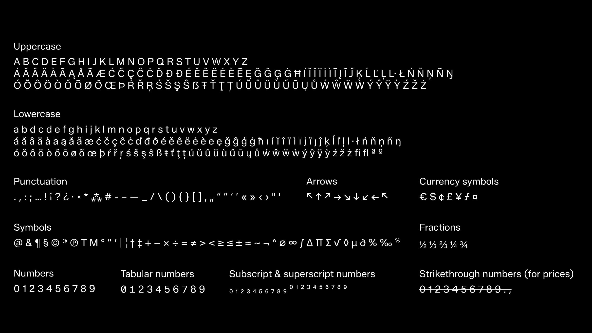 The Zalando Sans typeface includes a diverse range of characters, covering everything from the standard Latin set to Latin Extended. It has been meticulously designed to meet Zalando’s unique requirements, ensuring flexibility from precise formats to support for multiple languages.