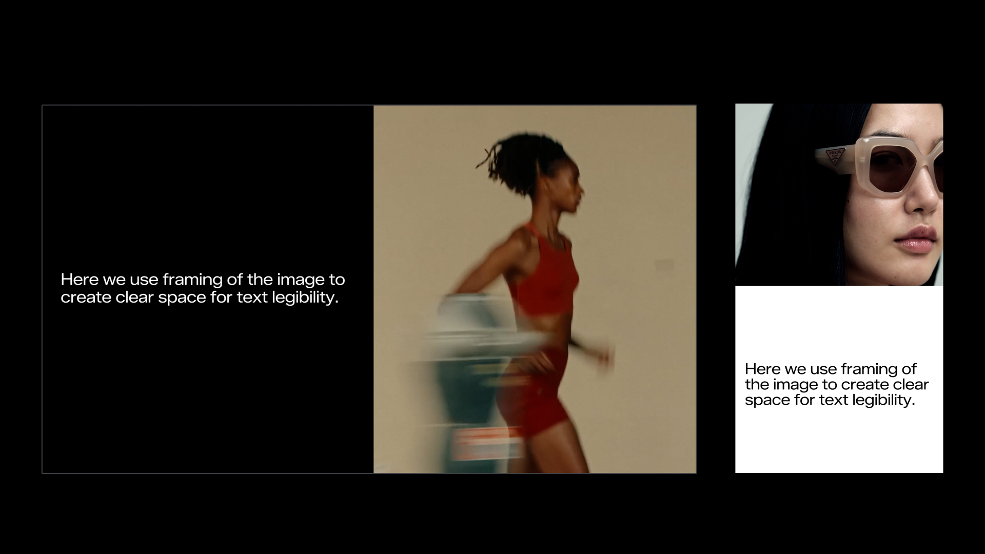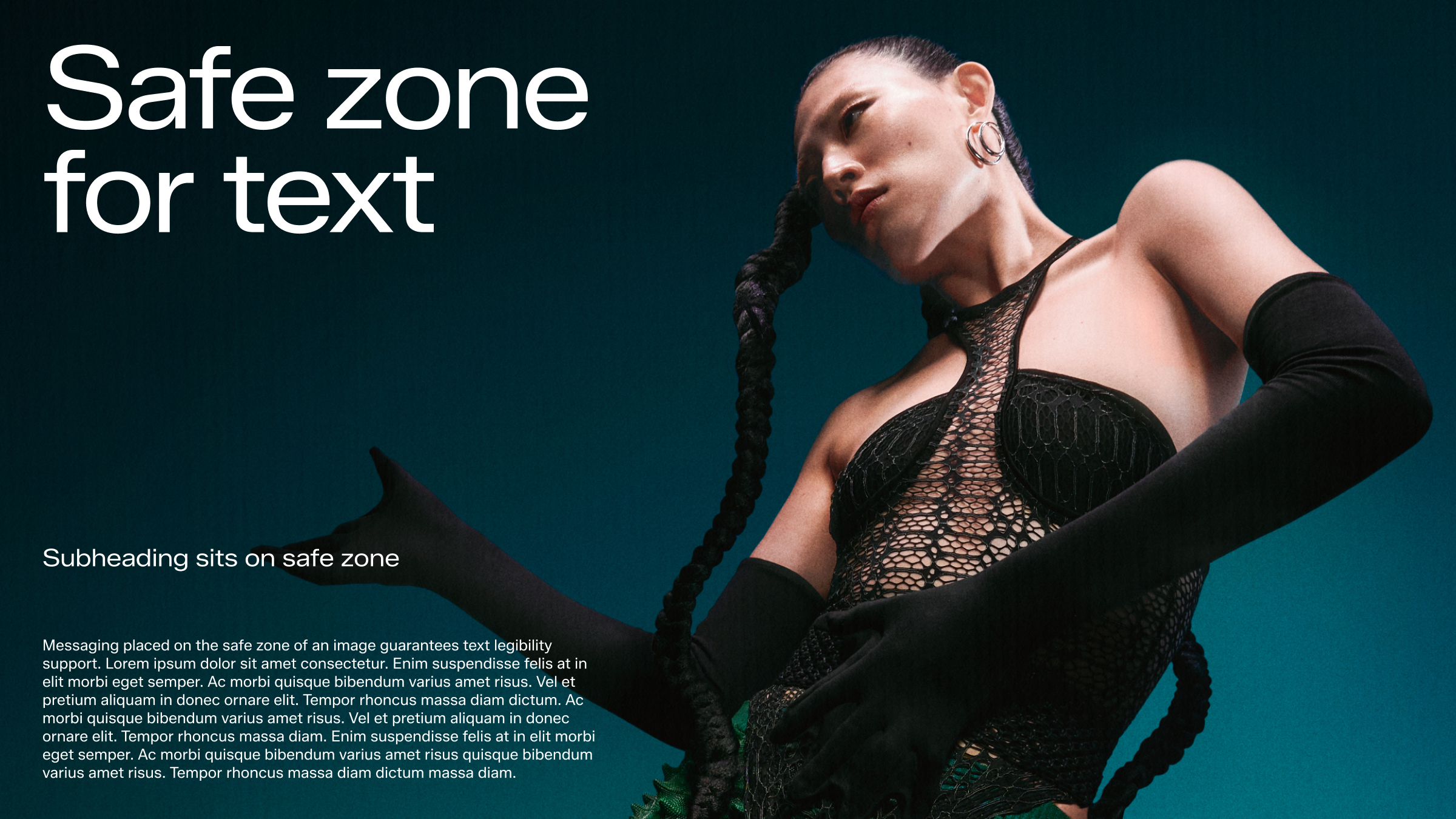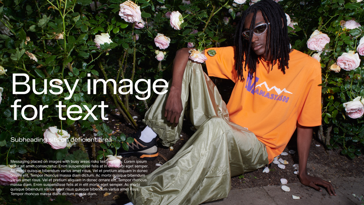 A safe zone on imagery for text placement is essential to maintain clarity and readability, ensuring that messages are communicated without visual distractions. Therefore, we carefully select imagery to accommodate text placement. This consideration should also be integrated into the image production phase as part of art direction, facilitating a harmonious blend of text and imagery.