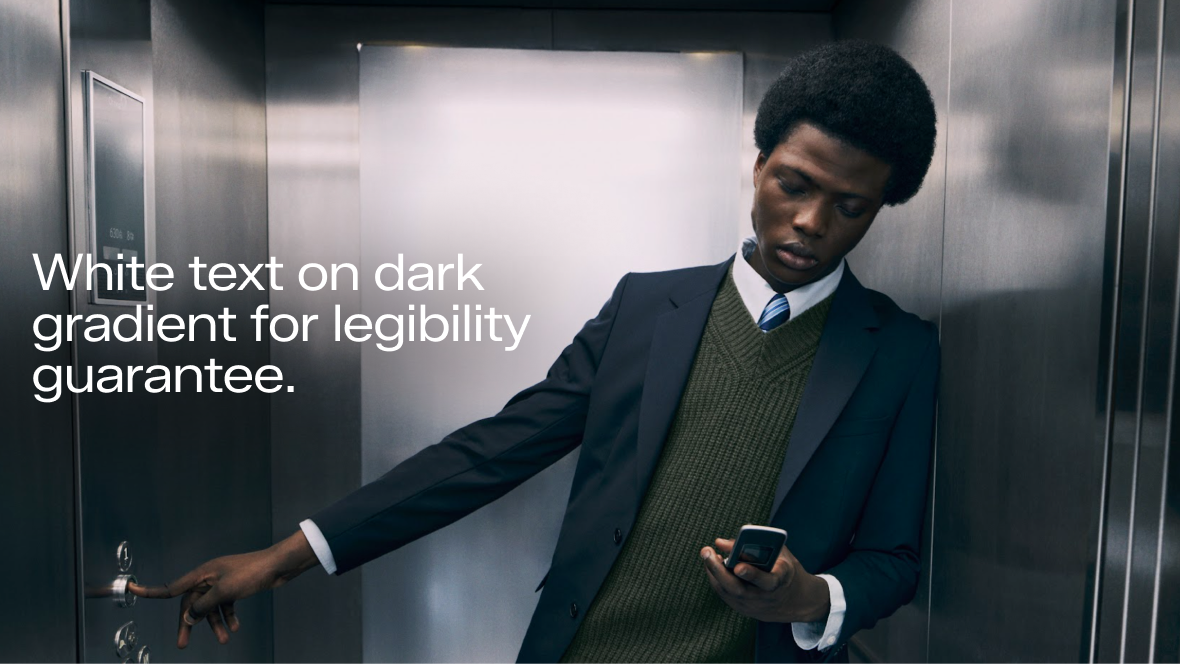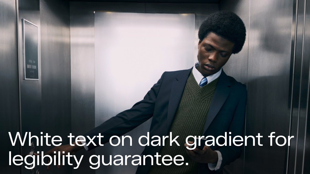 Below you can see how a gradient can be applied to the image. If this is not possible due to lack of a designated safe zone, a drop shadow can be applied. Please reach out to the ZDS team for further support with this treatment.