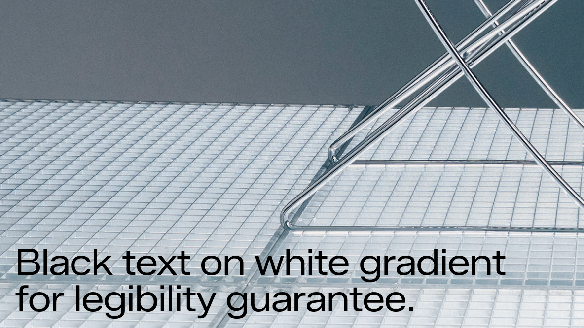 Due to the complexity of the images and the relatively long texts, sometimes text will be hard to read, to combat this please use dark or white gradients. Make sure the gradient has an even gradient and doesn't create hard edges. Feel free to adjust opacity for more or less result (usually between 30 & 80% works). Be especially careful when applying gradients over fashion and skin - make sure it doesn't change skin tone. Adjust gradient colour to skin tone or background if necessary.