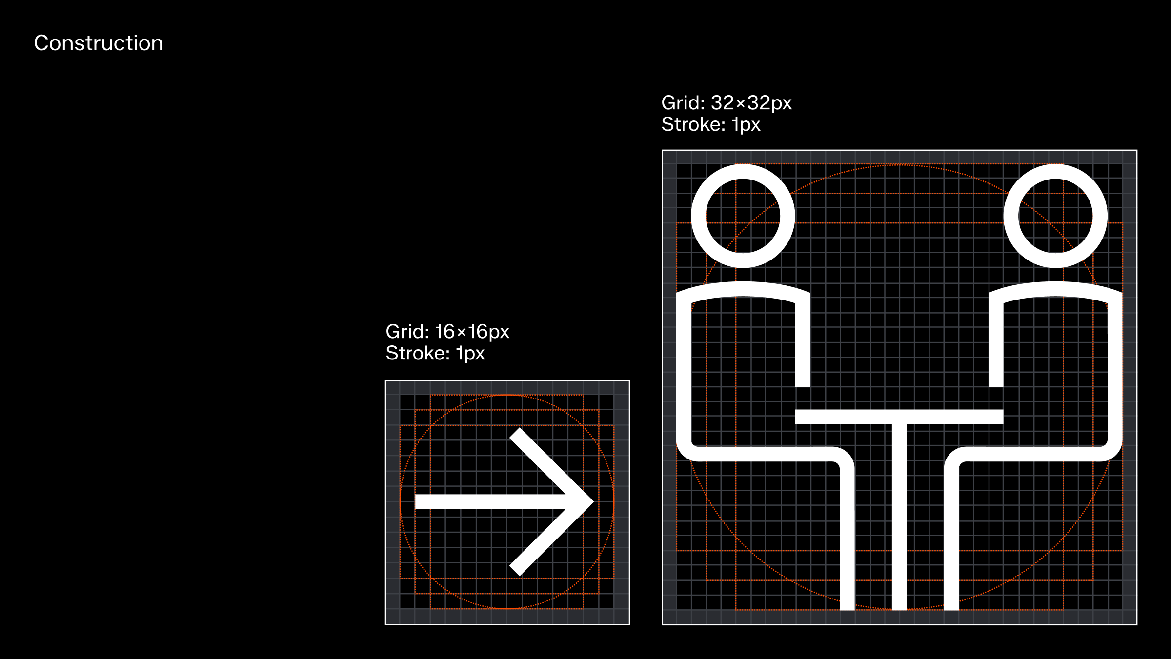 To accommodate this, the grid size is doubled from 16x16px to 32x32px as the starting point. Despite this increase, the same stroke weight is maintained to ensure a cohesive visual identity and a strong connection to our UI iconography.
