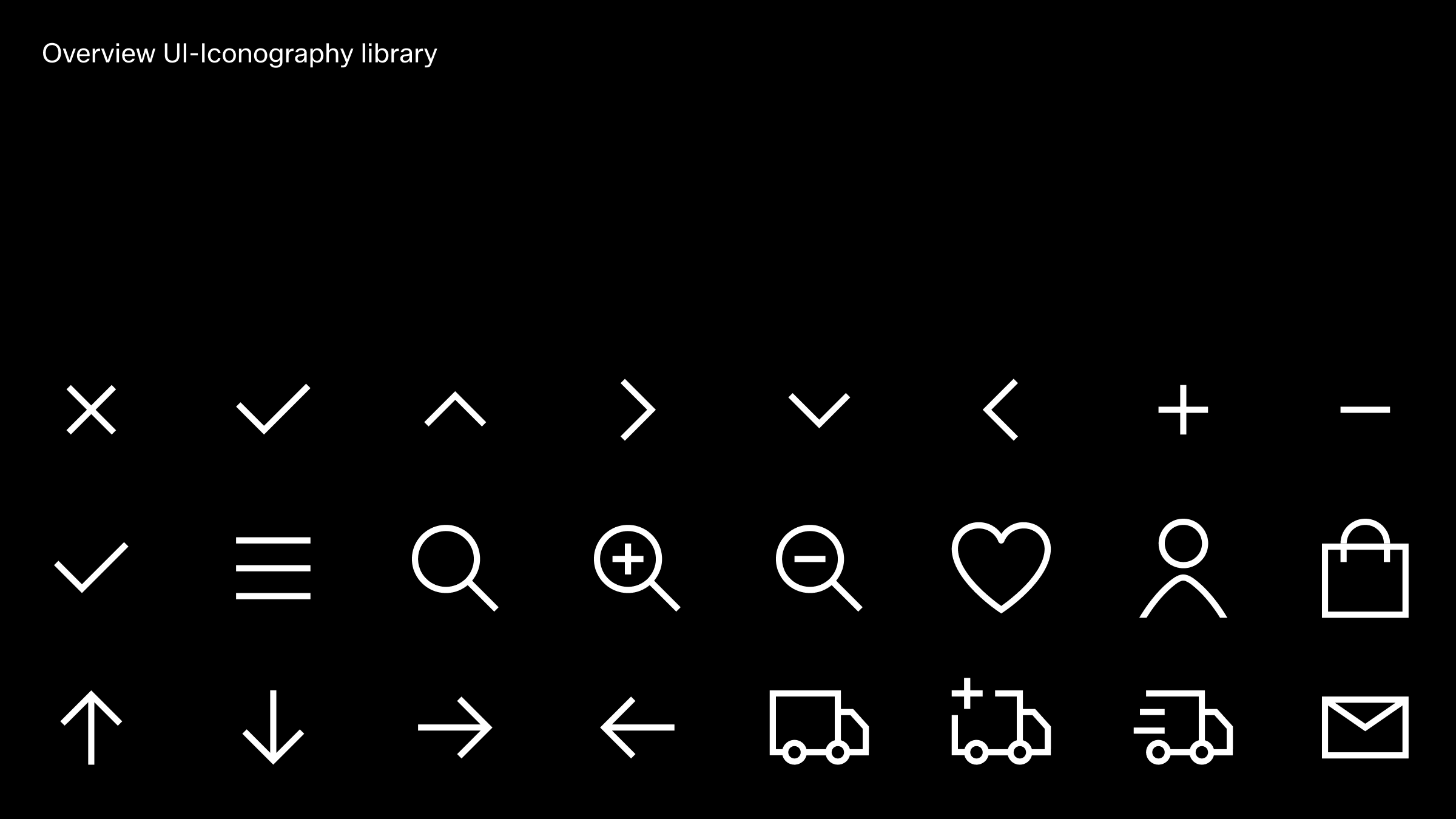 Iconography is a powerful functional tool and should never be used as decoration. It serves as a universal language, designed to be clear and direct, helping people navigate seamlessly across international audiences. Zalando’s iconography library ranges from highly functional UI icons, optimised for small sizes in digital contexts, to way finding pictograms, primarily used for navigation in physical environments.UI Icons